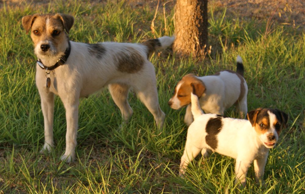 Dixie and her babies out for a stroll.