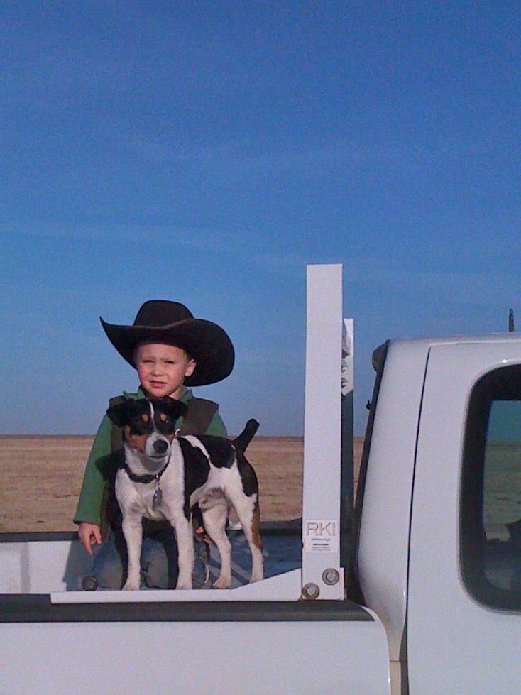 Branson the Grandson and Bullet out checking cattle.